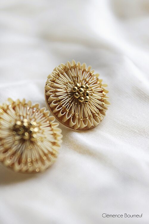 Boucles d'oreilles modèle pâquerette - Broderie de paille